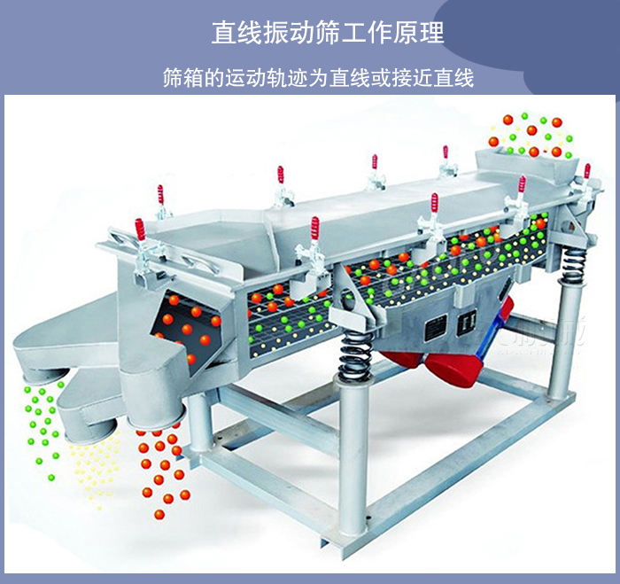 直線振動篩篩箱的運動軌跡為直線或接近直線,它有兩個軸,所以又稱雙軸振動篩。直線振動篩水平或傾斜安裝,這類振動篩結構緊湊,運行平穩(wěn),被廣泛用于各類物料的脫水、脫泥、脫介,也用于中、細粒度物料的干式和濕式分級作業(yè)。我廠生產的直線振動篩種HZSF型號就是直線振動篩代表性的產品。