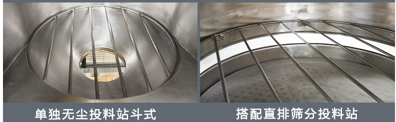 設置格柵,有效防止PE袋與粉末接觸,并配有振動篩(一般是直排篩或旋振篩),可有效攔截異物,確保出料合格。