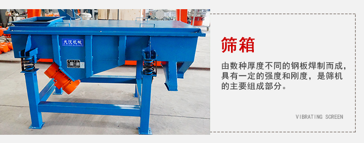 1、篩箱:由數種厚度不同的鋼板焊制而成,具有一定的強度和剛度,是篩機的主要組成部分。