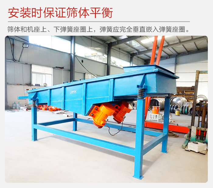 6、減振彈簧:阻止振動傳給地面,同時支持篩箱的全部重量,安裝時,彈簧必須垂直與地面。